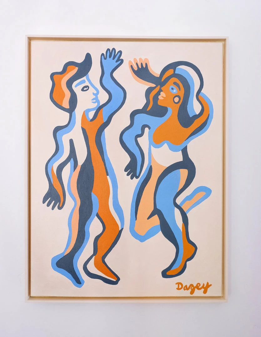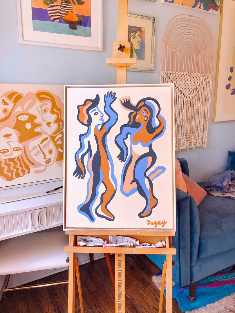 Original painting by Dazey Owner Danielle Roxanne Nagel. Hand-painted and custom framed to match right here in LA. Clean, graphic, and detail-oriented. Full of texture using thick brush strokes. Each piece took weeks to complete and is one of a kind, includes artists signature on the bottom right corner. Inspired by color, vintage design, and empowering women as always.
