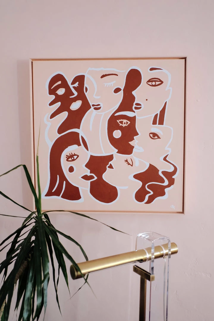 Original painting by Dazey Owner Danielle Roxanne Nagel. Hand painted and custom framed to match right here in LA. Clean, graphic, and detail oriented. Full of texture using thick brush strokes. Each piece took weeks to complete and is one of a kind, includes artists signature on bottom right corner. Inspired by color, vintage design, and empowering women as always.