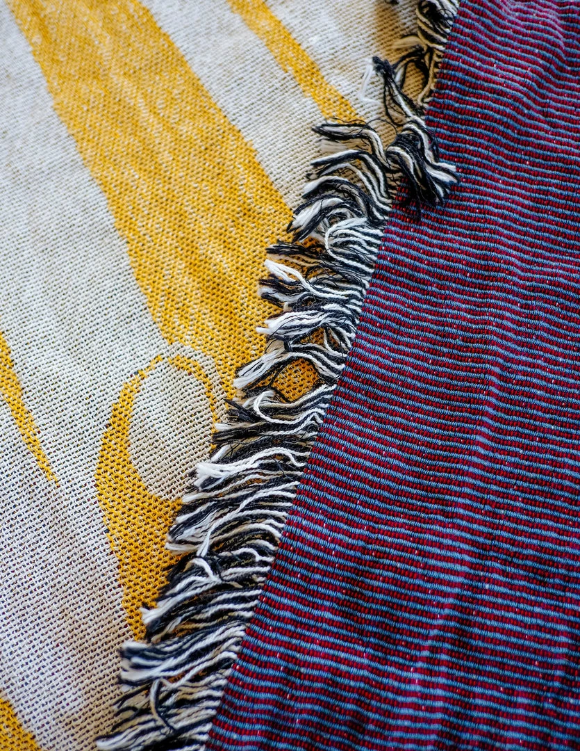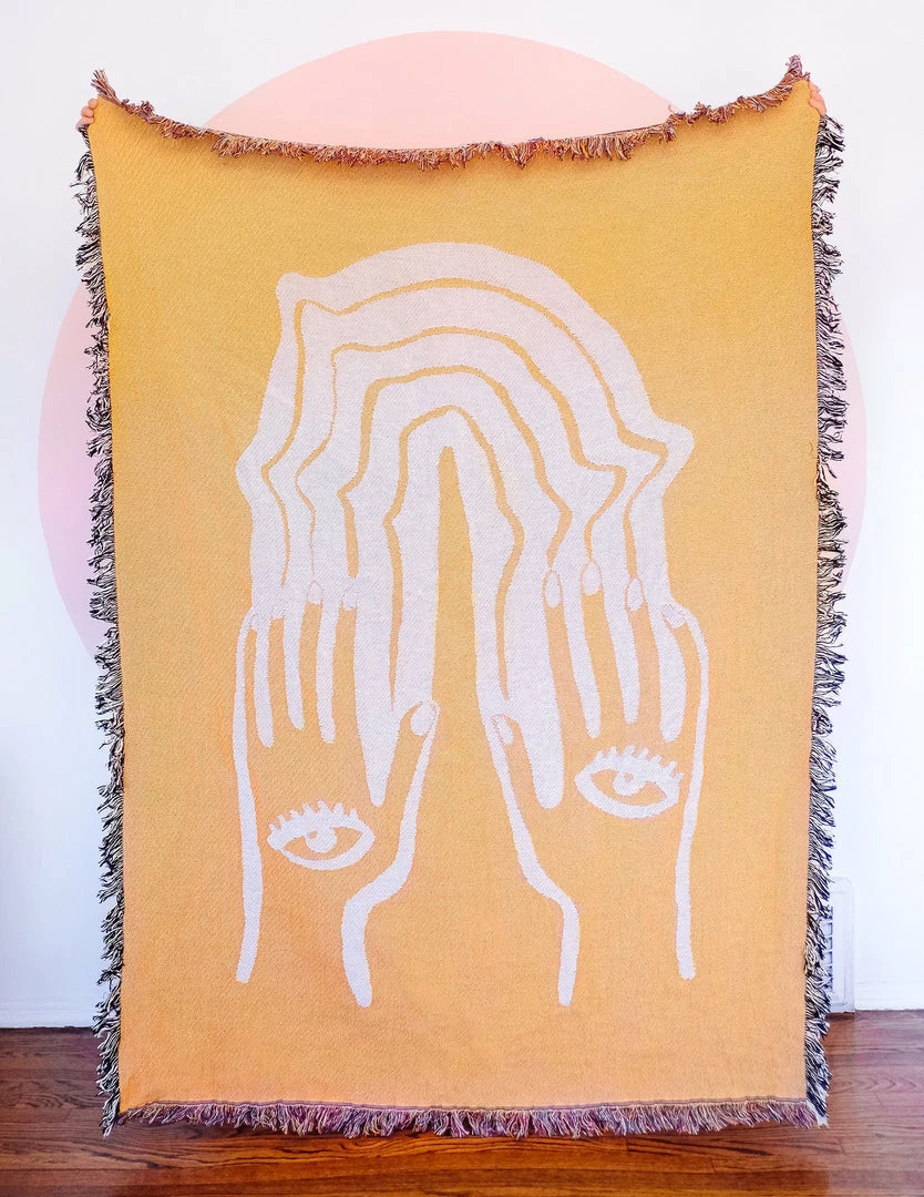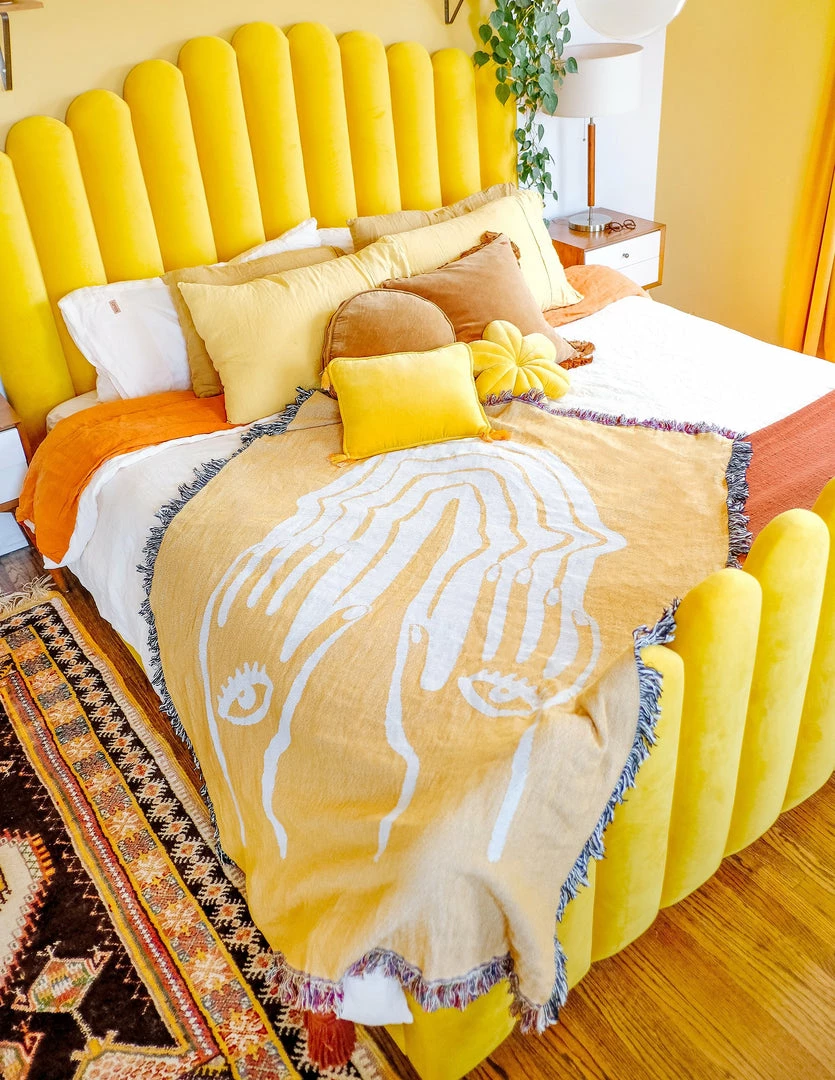 The perfect cozy addition to your Dazey Den! Soft and luxurious blankets woven in USA. Heavy and high quality, yet breathable due to cotton and weaving technique. 2 ply thickness, shown front and back in photos. Hand drawn design based off of our most popular Dazey graphics. Add that pop of color, fun, and fashion to your space while supporting small business!