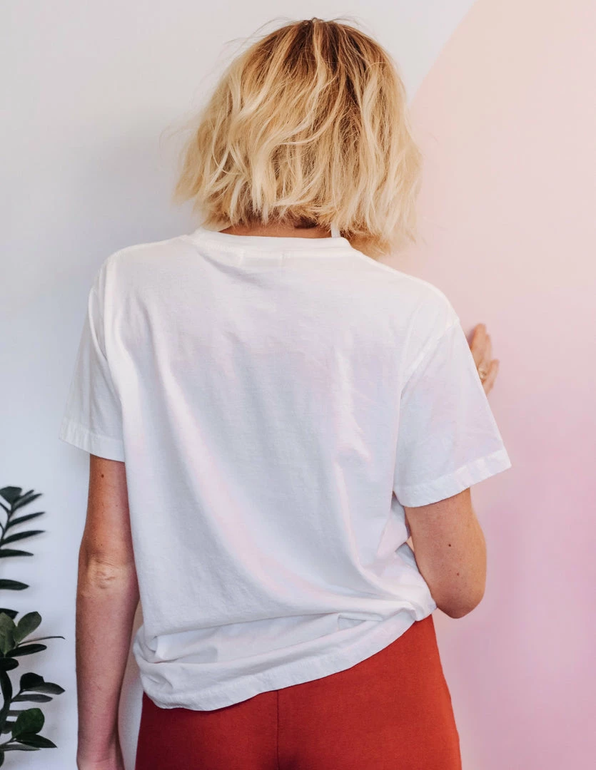 Slouchie Tee fits loose like a vintage boyfriend tee. 100% Organic Cotton. Made in Los Angeles. Hand drawn graphic. Super soft hand feel.