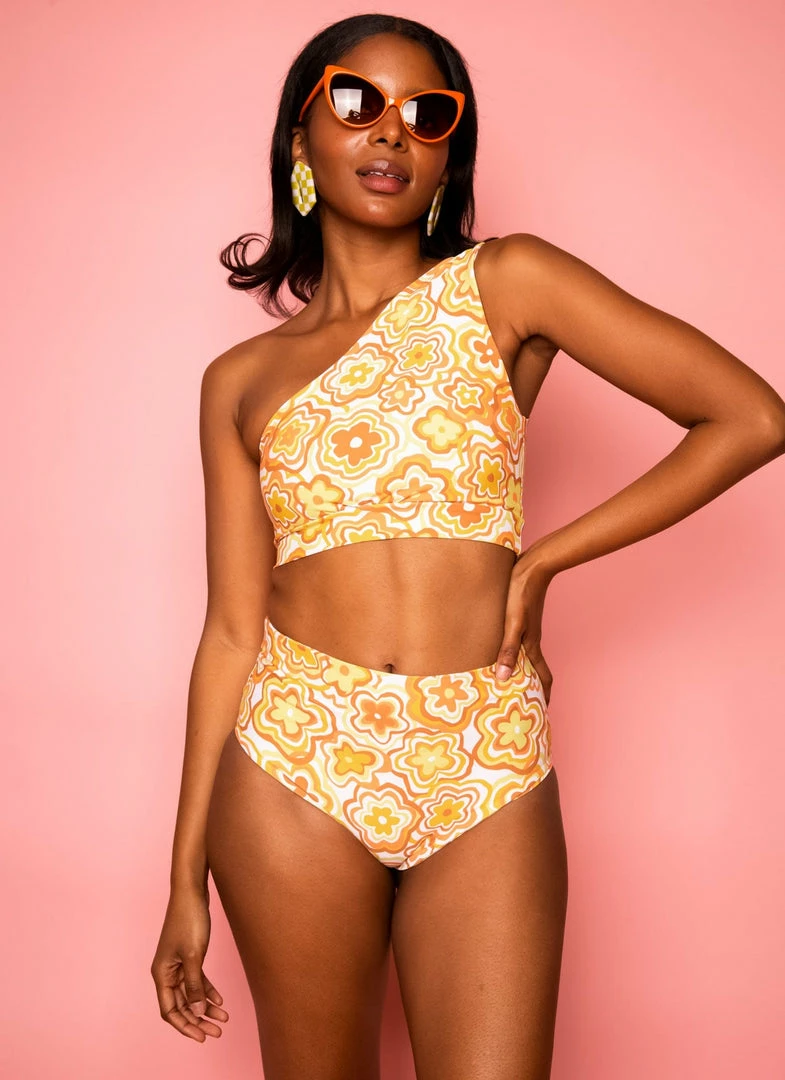 Made from a high quality soft-as-butter poly and recycled cotton mix. Hand drawn design fully printed and made in downtown Los Angeles in small and sustainable batches. Silhouette designed to be fit-friendly and supportive, fabric has a lot of stretch. Cute shoulder detail adds a chic and playful look. Fully self-lined with double fabric band on bottom for additional support. Wear with matching legging while working out or with our swim bottoms in the water! These tops also look great with a pair of jeans out on the top. This versatile top and fabric were made for all the above.