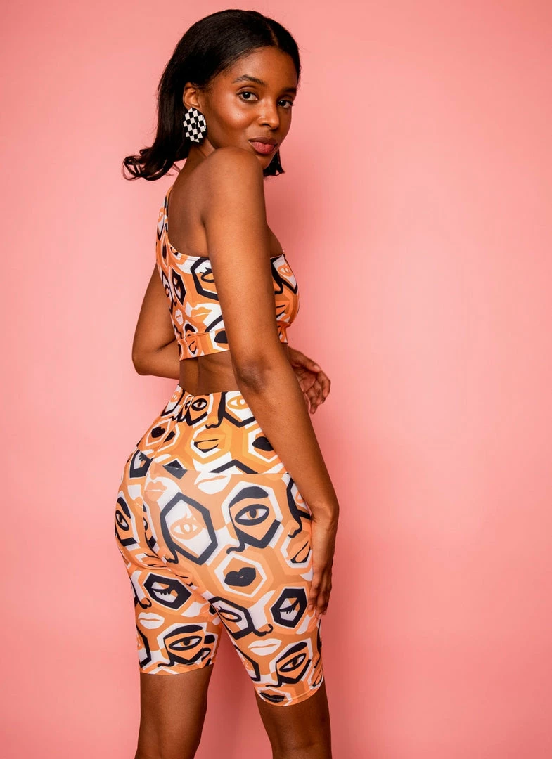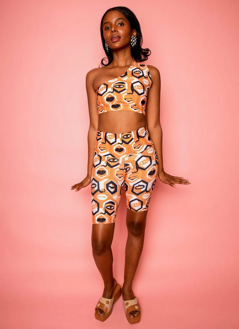Made from a high quality soft-as-butter poly and recycled cotton mix. Hand drawn design fully printed and made in downtown Los Angeles in small and sustainable batches. Silhouette designed to be fit-friendly and supportive, fabric has a lot of stretch. Cute shoulder detail adds a chic and playful look. Fully self-lined with double fabric band on bottom for additional support. Wear with matching legging while working out or with our swim bottoms in the water! These tops also look great with a pair of jeans out on the top. This versatile top and fabric were made for all the above.