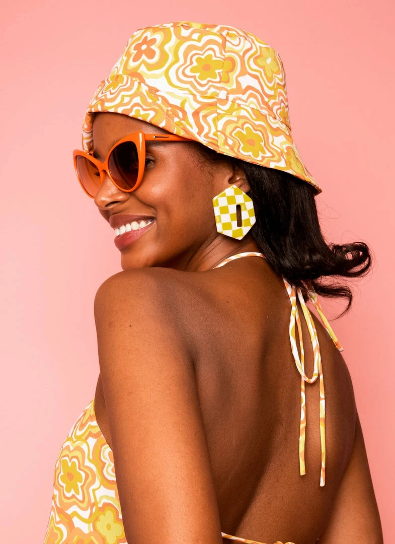 The dreamiest bucket hat around, pairs perfectly with our new dresses and jumpsuits. Silk fabric with thick batting on the inside. Sits perfectly and feels comfortable.