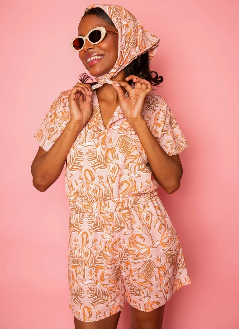 Our romper is summer perfection. Loose flowy fit, elastic waist, and perfect comfortable yet cute length. Made long and loose to fit multiple torso lengths.Â