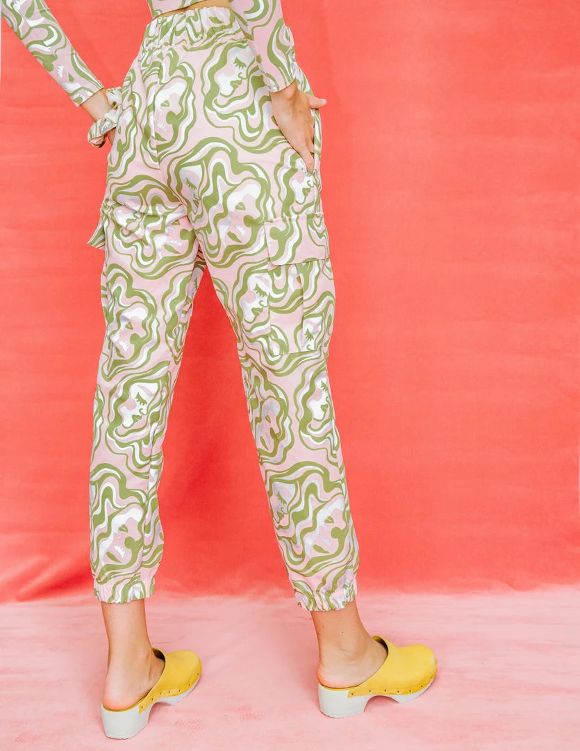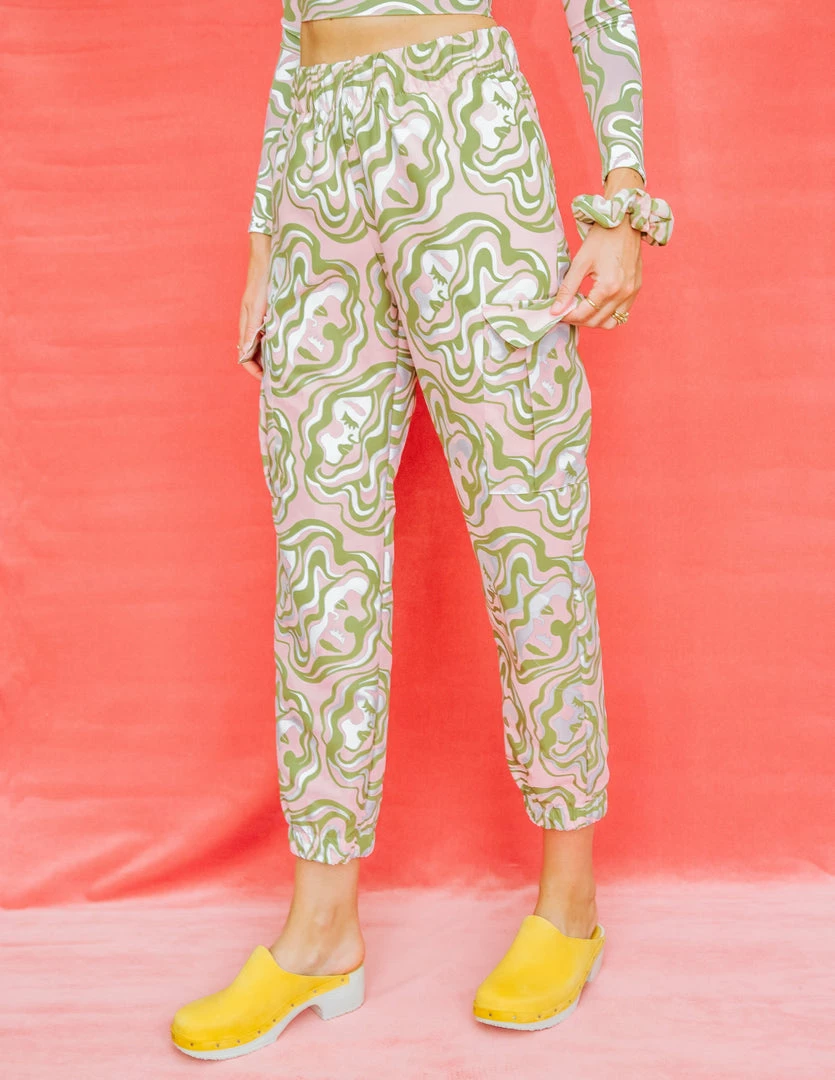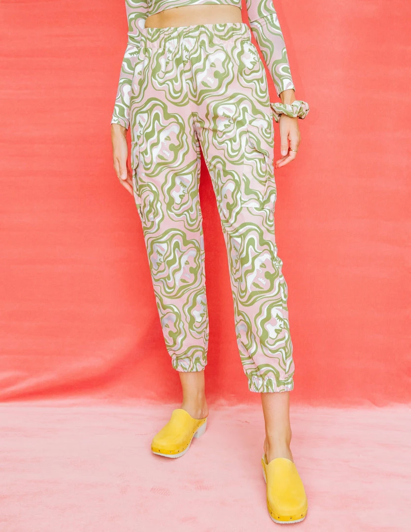Cargo Pants Details – Cutest cargo fit, designed to be fir friendly with elastic waistband. Made fully in LA using study yet soft windbreaker fabric. High rise waist, cargo pockets, waistband pockets, and a tapered elastic leg finish.