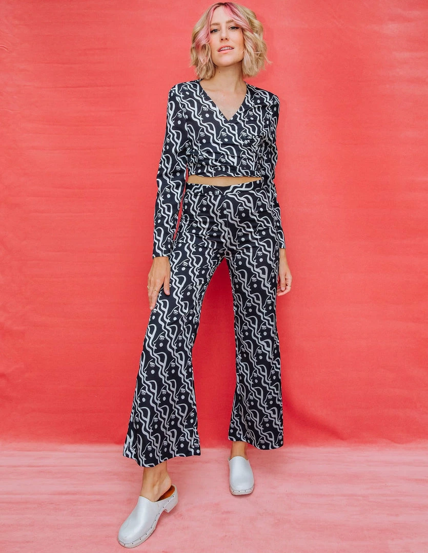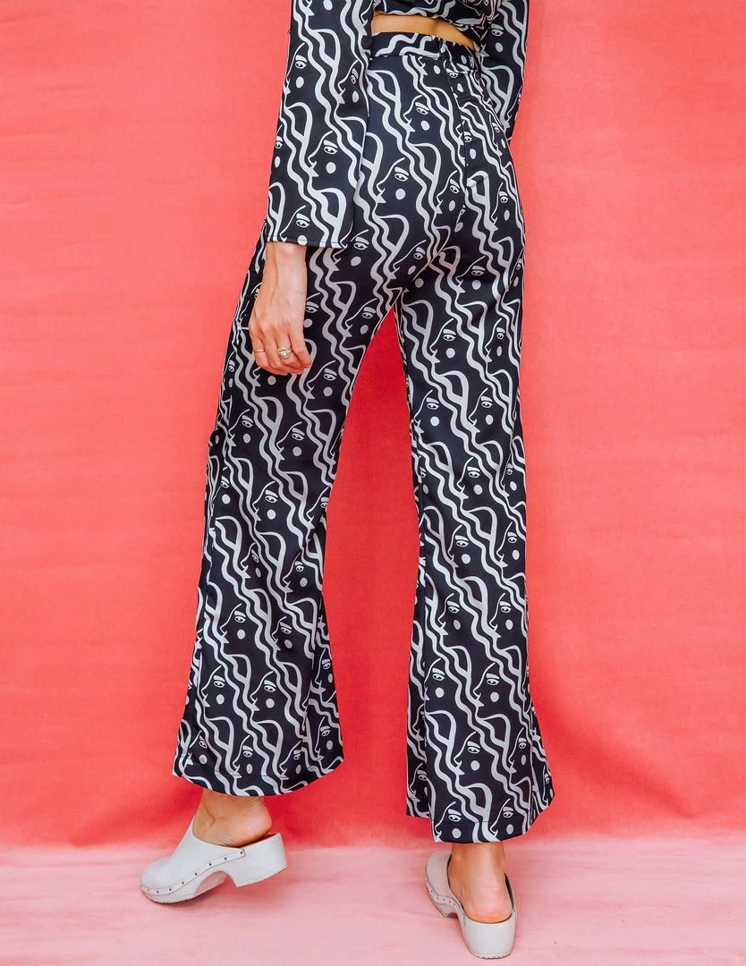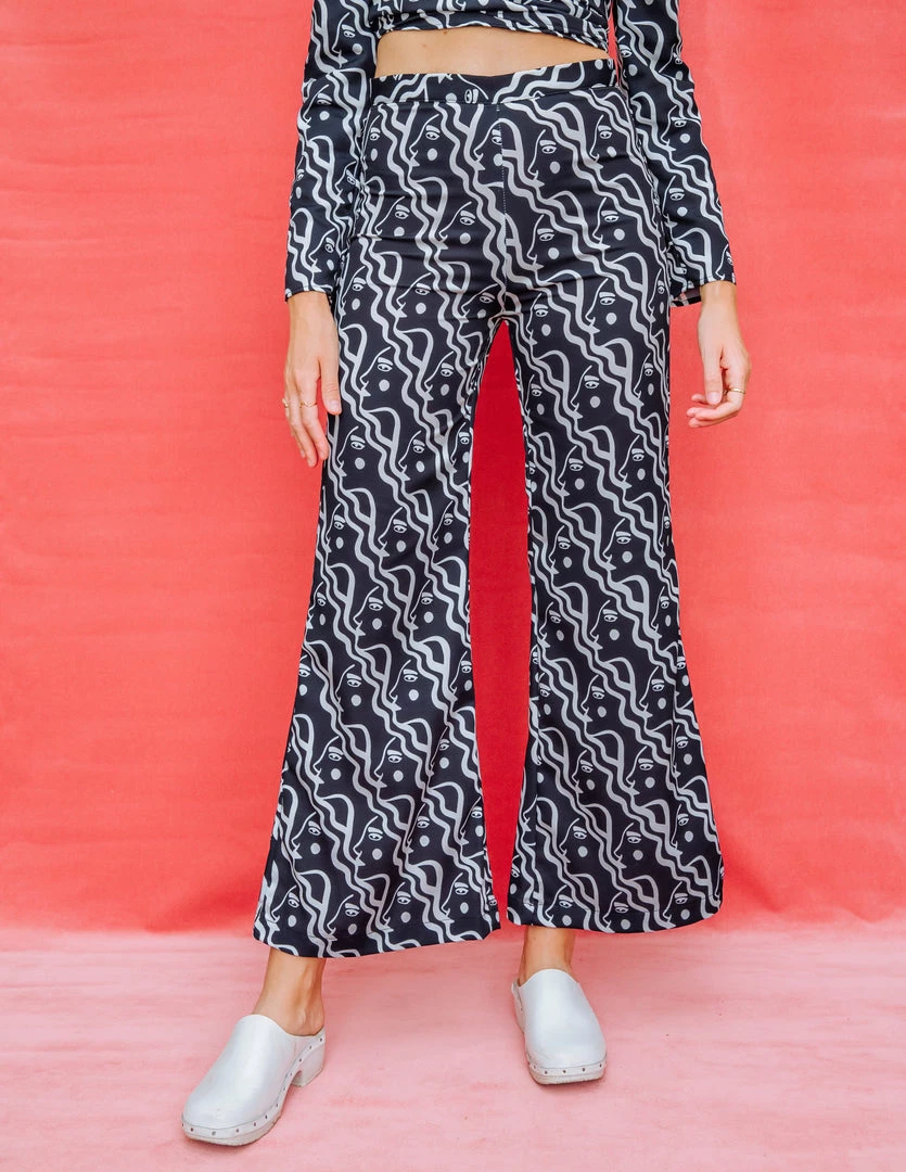 Flare is cropped at the perfect length to hit the floor on our shorter customer or be a cute crop on taller.