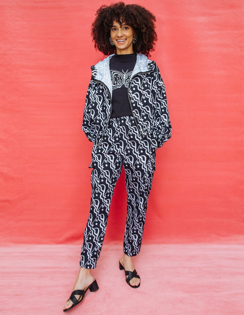 Cargo Pants Details – Cutest cargo fit, designed to be fir friendly with elastic waistband. Made fully in LA using study yet soft windbreaker fabric. High rise waist, cargo pockets, waistband pockets, and a tapered elastic leg finish.